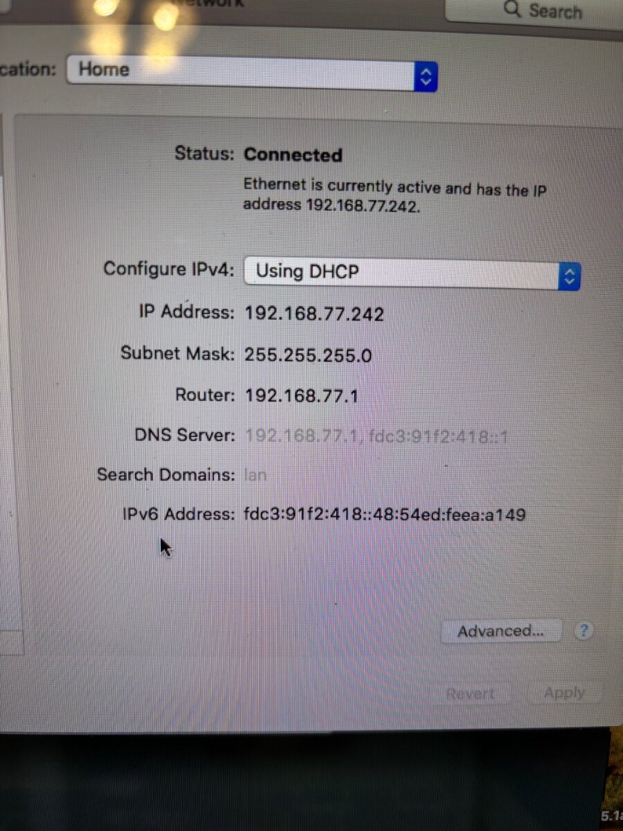 No sir, this is connected to my other router but I’ll connect it to the Duma and resend. Sorry, I thought you just wanted the IP from the Mac itself.