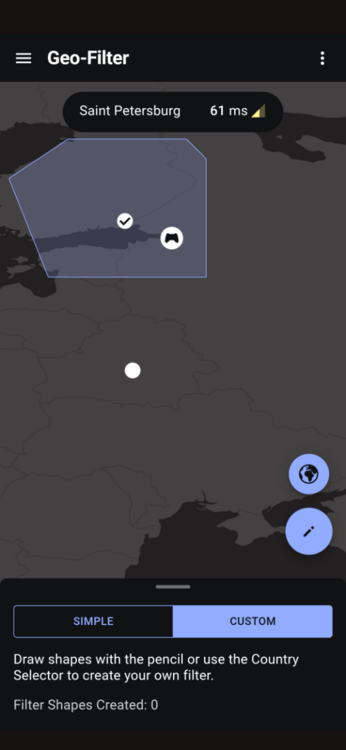 Ok. And yeah, i'm only geetting servers within the circled region so all is good that end. I'll use the custom one tonight to see if it works in putitng me in USA once i've circled those servers -