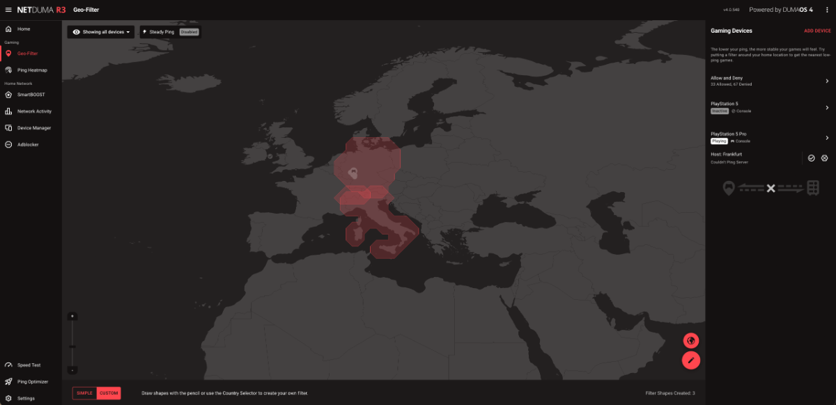 🇮🇹 Aiuto Geo-Filter R3: Trova Server Italiano, Connette a Dublino Ciao a tutti, Ho un problema frustrante con il mio Netduma R3 e il Geo-Filter. Il router individua e visualizza correttamente il server italiano sulla mappa, ma non riesce mai a stabilire la connessione con esso. Invece, il gioco mi reindirizza puntualmente a un server lontano, solitamente quello di Dublino. Qualcuno ha riscontrato questo comportamento? Se il server italiano è disponibile e viene visto dal Geo-Filter, come posso forzare la connessione su di esso anziché finire a Dublino? Grazie per qualsiasi suggerimento.