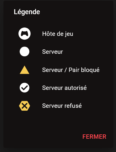 C'est comme ça depuis 10 ans ! Au lancement d'un jeu multijoueur en ligne, peu importe lequel, via le geofiltre, l'ensemble des serveurs disponible apparaissent. (Ping serveur disponible / réponse au ping) Soit vous automatisez la recherche en sélectionnant le jeu cible si il est listé sur le périphérique, soit vous faites une recherche/sélection manuelle/visuelle via le geofiltre. En sélection manuelle, il vous suffit de vous fier à la légende : Si l'accès au jeu est refusé, c'est que vous avez refusé le serveur d'authentification en règle générale, il faut faire le bon tri ! 😉 Depuis que les serveurs dédiés sont généralisés c'est encore plus simple... ------La base cloud est mise à jour régulièrement pour les jeux listés.----- Au passage sans SBMM BO7... les serveurs US vont être une vrai plaisir 😅