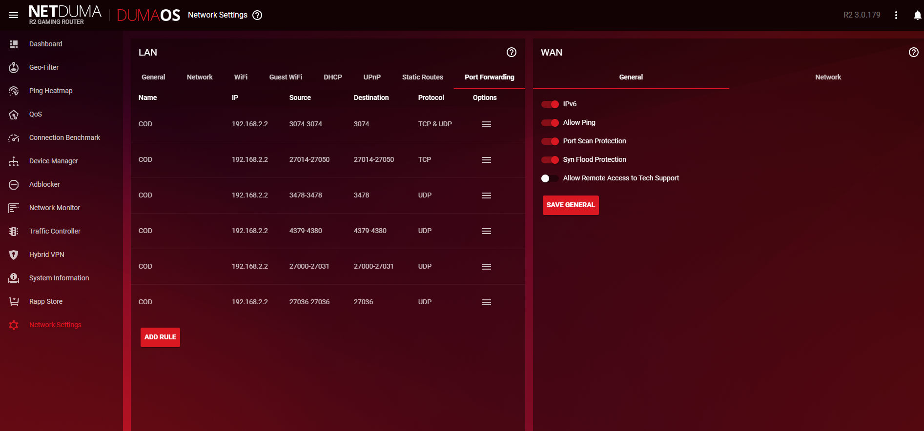 yoguzturk Posted February 26, 2021 Posted February 26, 2021 2 hours ago, Netduma Fraser said: So you were changing the LAN IP address? What did you try changing it to? If you upgrade again can you provide a screenshot of what you're seeing on the Geo-Filter or better yet a small video please? Hi, I updated my Netduma R2 device. Something went wrong and I had to go back to the old version. Now I cant do my old settings I've been trying to solve problems all day, but I'm skipping things and I'm not aware. I cant do Call of Duty: Warzone Port forwarding NETDUMA WAN IP:192.168.1.2 I reserved NETDUMA WAN IP address from my IPS modem and I added NETDUMA WAN IP address on dmz from my IPS modem I reserved my pc IP address from my Netduma R2 device I add all COW port from Netduma R2 device but notting working 3.bmp 2.bmp 4.bmp 1.bmp 5.bmp