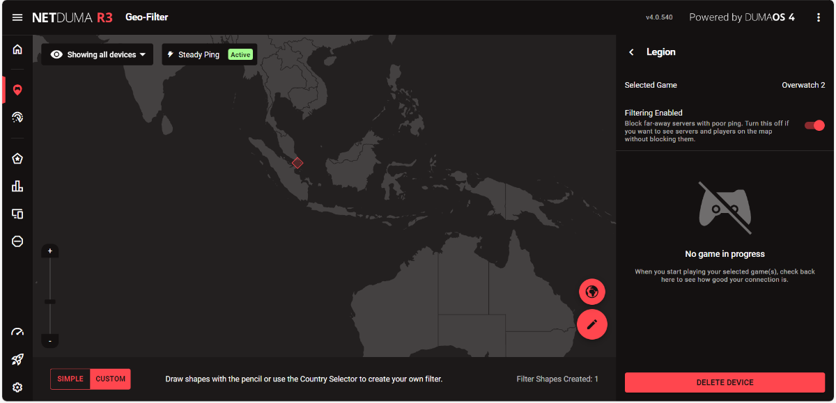 Administrators Netduma Fraser Posted yesterday at 03:14 PM Administrators Posted yesterday at 03:14 PM What do you need the IP addresses for specifically? The router can get the IPs yes but we don't show the IPs on the interface and we don't provide them. Also on Ping Heatmap the IPs shown there may not specifically be the game server but a server in the same location as where the game server is. For the Geo-Filter: Do this: Quit the application/game/client completely - including the game client from the System Tray - important! Remove device from the Geo-Filter Give the PC the PlayStation Device Type in the Device Manager Resync from the Geo-Filter Map menu Re-add the device to the Geo-Filter Set up the Geo-Filter how you like Wait 2 minutes Boot up application/game/client It's essential the Geo-Filter is enabled before the game client or the game have been launched. If you change Geo-Filter settings when you're on the game then you will need to restart the game for those changes to take effect, otherwise it will use the previous Geo-Filter settings and appear not to be working.