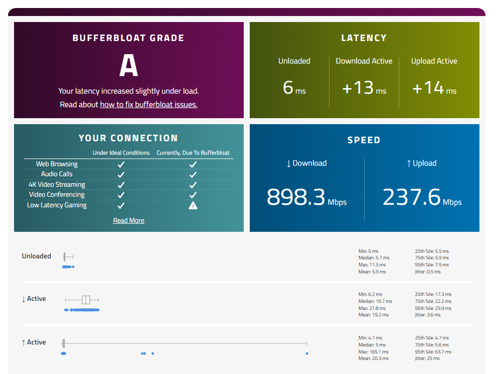 ProfD Posted 5 hours ago Posted 5 hours ago I tested so many times with ping optimizer to lower my jitter and it doesn't work, I switched my ethernet to my main router's provider and it's much better than net duma, something is wrong with netduma r3 modem, no way the jitter is sky high, I also have the newer version v4.0.645, I try different stuff but nothing works, any advice? btw i don't even have 237.6 mbps upload speed so i have no clue why it's up there, i only have 1gbps download and 150 mbps upload from my provider.